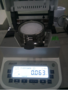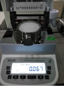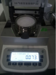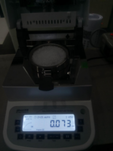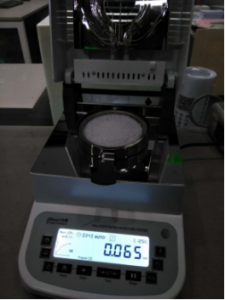 - 將水槽、架子一一裝好,接通電源,按下開機鍵,顯示屏進入開機界面,首先按去皮鍵減去樣品盤重量,后將100g砝碼放入托盤進行校準(zhǔn);