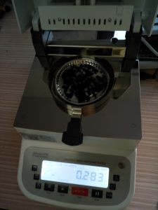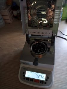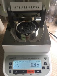 3、平衡后將樣品瓶移出,取出樣品,用電子天平稱取樣品置于樣品瓶?jī)?nèi),然后在水分儀上點(diǎn)擊開始測(cè)量,同時(shí)將樣品瓶裝入加熱槽。