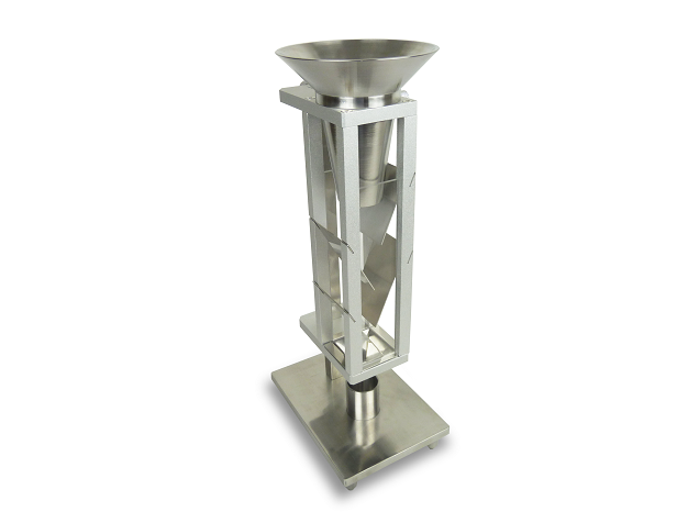 斯柯特容計法松裝密度測試儀是依據(jù)國家GB5060-85《金屬粉末松裝密度的測法第二部分:斯柯特容量計法》設計、制造;同時符合采用國際標準ISO 3932/2《金屬粉末松裝密度的測定第2部分:斯柯特容量計法》。該測試裝置適用于不能自由流過漏斗法中孔徑為5mm的漏斗和用振動漏斗法易改變特性粉末。